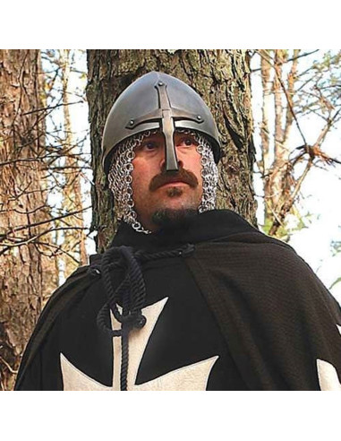Questo impressionante elmo è una replica completamente pronta per la battaglia, senza visiera, che ti riporterà direttamente ai tempi dei cavalieri e dei coraggiosi guerrieri. Durante i tornei era comune indossarlo sotto un grande elmo o un semplice copricapo di stoffa, in quanto forniva un'ottima protezione e permetteva una visione ottimale.