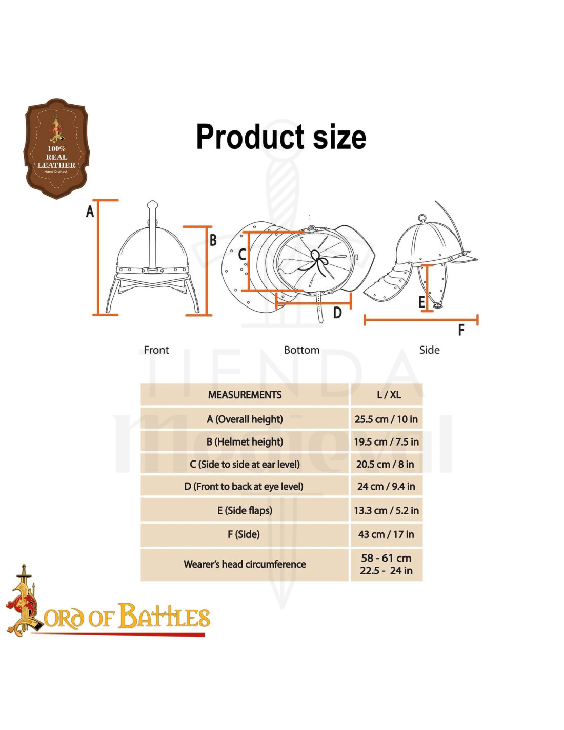 All’interno, presenta una sospensione a sezione cucita per un ajuste comodo e sicuro, completata da una cinturina in pelle regolabile che si adatta a circonferenze della testa da 58 a 61 cm. Il suo design pronto all’uso, con tutto assemblato e il liner al suo posto, permette di indossarlo in pochi secondi, sia in una rappresentazione teatrale, in una sessione di LARP o come pezzo da collezione.