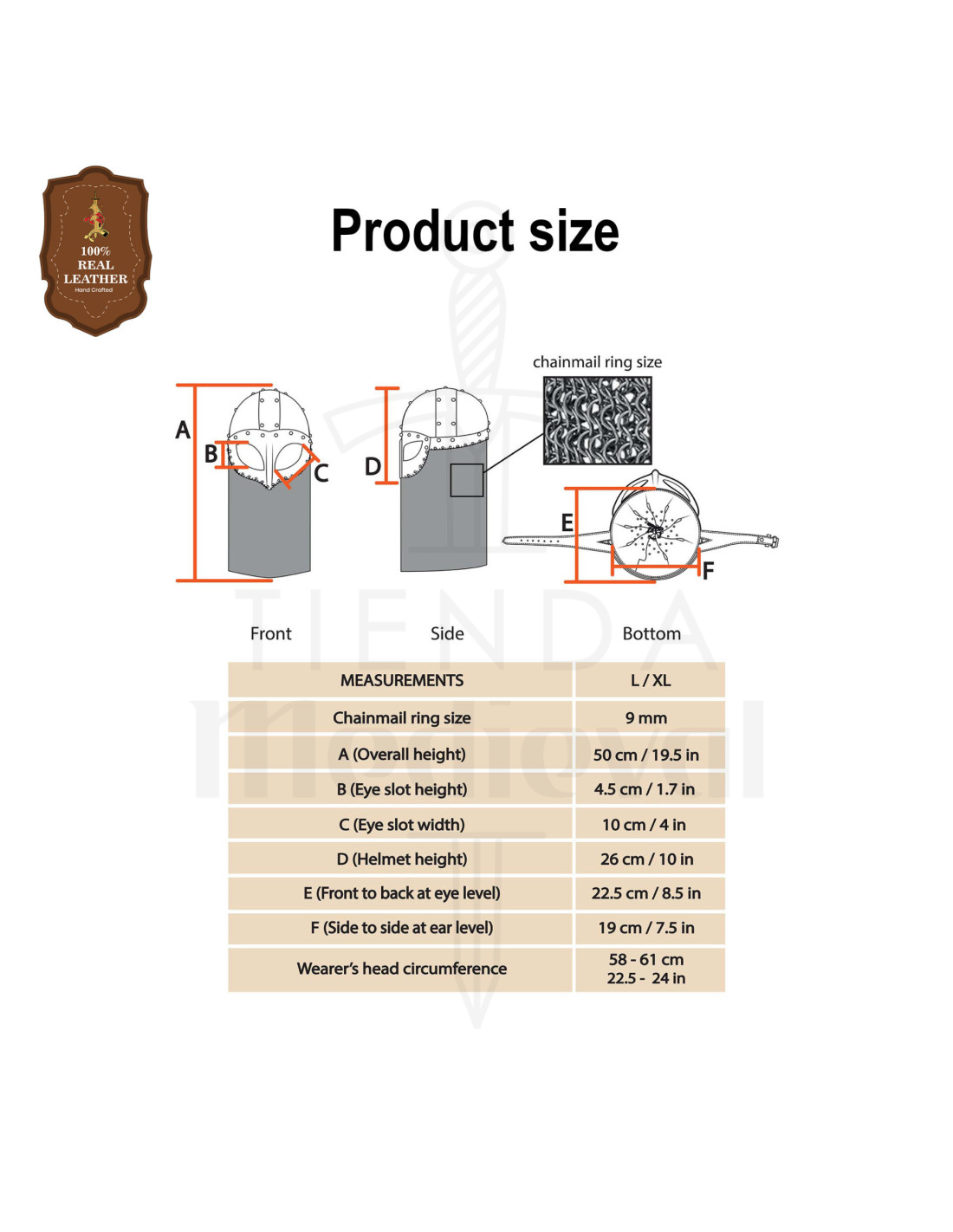 - Adattato per Diversi Eventi: Perfetto per attività che richiedono un equipaggiamento autentico e duraturo, questo elmo vichingo con maglia di ferro offre una protezione ampliata in uno stile storico.
