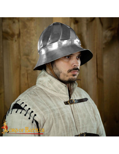 Elmo medieval burgundio del siglo XV, con forro de cuoio