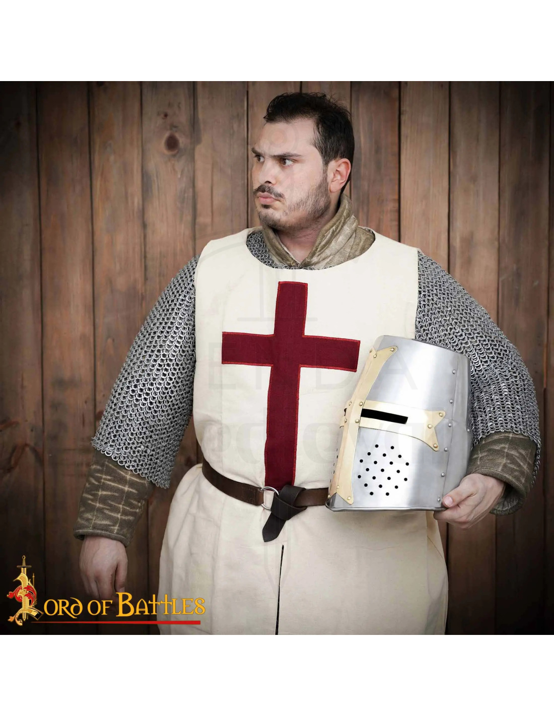 Addentrati nella storia dei cavalieri con questo impressionante casco templare in acciaio lucido, una fedele riproduzione del famoso e temuto Great Helm del XIII-XIV secolo. Perfetto per esposizioni, costumi o eventi medievali, la sua finitura in acciaio brillante conferisce quel tocco autentico che ti trasporta direttamente alle crociate.