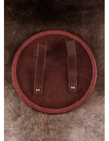 Questo scudo diventa più di un accessorio, un simbolo tangibile del tuo impegno con la storia e la tradizione. La texture del legno e i rivetti di ottone, frutto di un'artigianato meticoloso, suscitano in te un senso di appartenenza a quell'epoca turbolenta, dove il valore e l'onore definivano chi fossero i veri protagonisti. Il suo peso di 2,2 kg e la sua robustezza ti offrono fiducia, come se portassi un reliquiario che collega passato e presente, pronto ad affrontare qualsiasi avversità e a difendere la tua identità con convinzione.