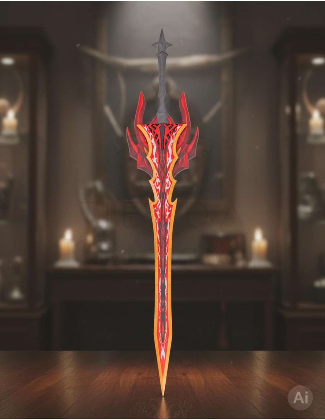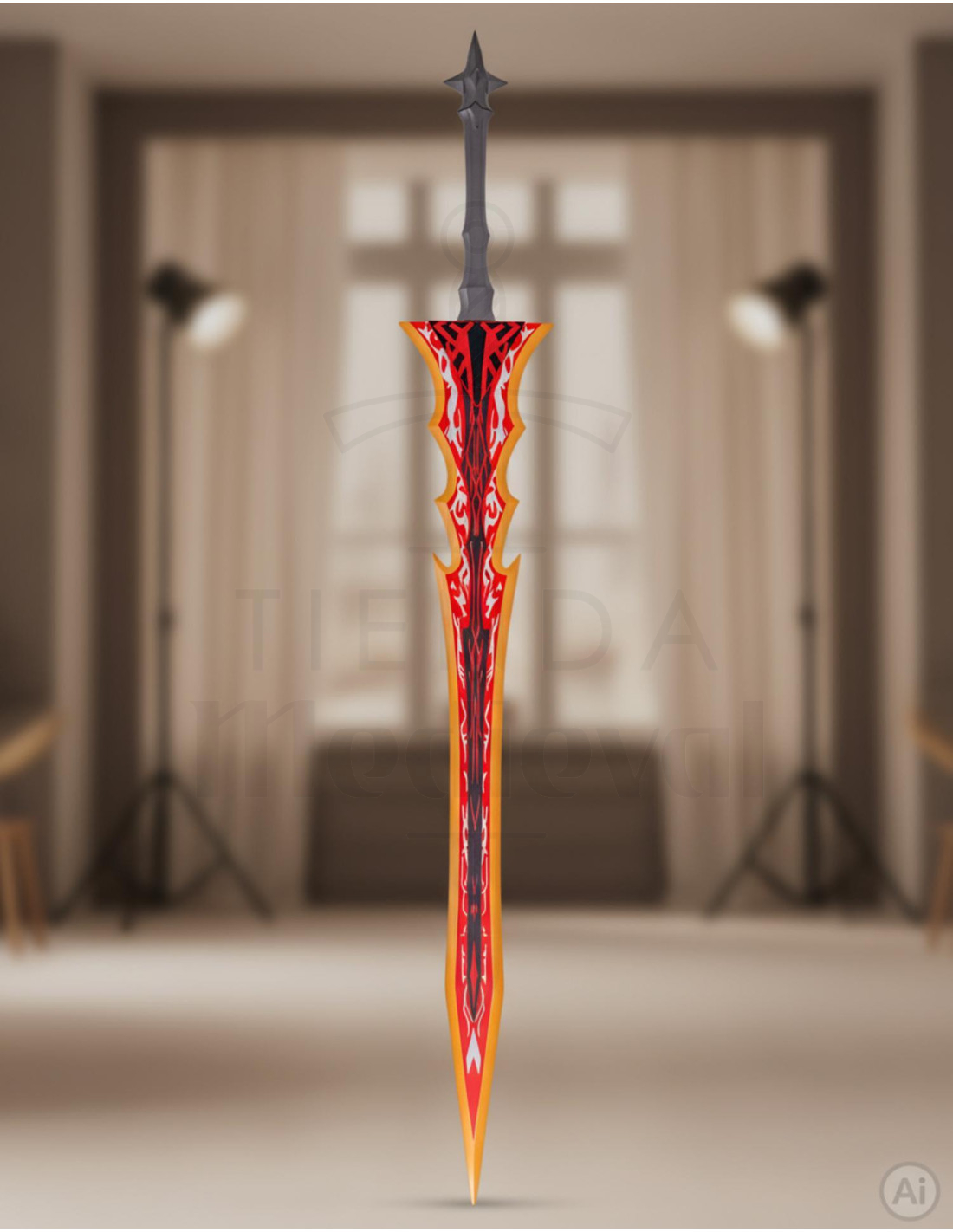 Se cerchi un pezzo accattivante da esporre che catturi l'intensità dell'universo di Solo Leveling, questa replica decorativa della spada lunga del Re Demone è perfetta per gli appassionati di manga e cosplay. Con una lunghezza totale di 125 cm e una lama di 92,5 cm, combina un design vistoso in tonalità di rosso, nero e oro che sicuramente attirerà tutte le attenzioni.