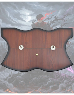 La base in legno laccato non solo facilita l'esposizione, ma aggiunge un'aria raffinata e di finitura professionale, con forme curve e punte decorative che integrano il pezzo nell'ambiente. I supporti metallici assicurano ogni arma con fermezza, rendendo il montaggio stabile e sicuro, progettato per esporle con orgoglio.