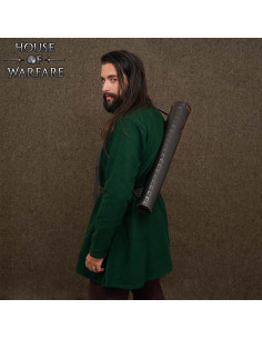 Esplora la tradizione dell'arceria medievale con questa elegante faretra in cuoio per la schiena, ispirata da reperti autentici dell'epoca vichinga-normanna e da illustrazioni normanne della Tapestry di Bayeux. Con un'altezza di 60 cm e un design che si restringe da 9,7 cm nella parte superiore a 6,5 cm alla base, permette di mantenere le frecce in posizione verticale per un accesso rapido ed efficace.