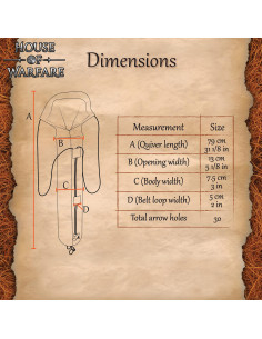 Faretra medievale in pelle, modello fantasy arciere