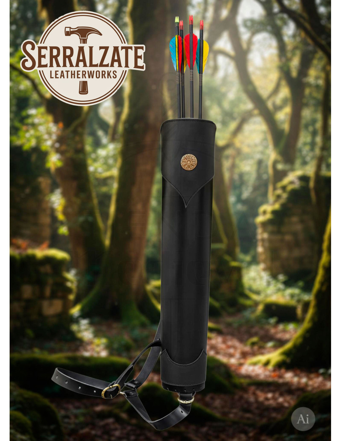 Nella pratica questo si traduce in un fodero che resiste all'uso continuato, mantiene la sua silhouette e protegge il contenuto dall'usura, apportando al contempo un aspetto elegante e leggermente rustico. L'interno consente di organizzare gli elementi in modo sicuro e la chiusura e i rinforzi metallici danno fiducia quando ci si sposta. Anche se l'immagine mostra frecce all'interno per riferimento visivo, le frecce non sono incluse, per favore tienilo presente.