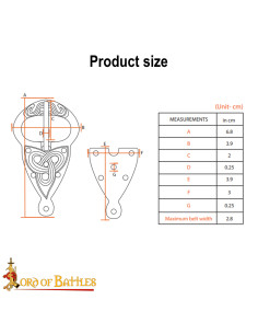 Con dimensioni progettate per adattarsi a cinture standard in pelle o altri materiali simili, la sua funzionalità è garantita. Le pratiche opzioni di chiusura e i fori per il fissaggio assicurano che questa fibbia sia tanto pratica quanto bella. Inoltre, il suo design ergonomico consente di adattarsi comodamente alla tua cintura, rendendola ideale sia per eventi di rievocazione storica e LARP che per l'uso quotidiano in look alternativi.