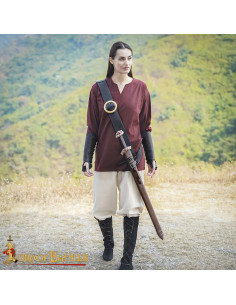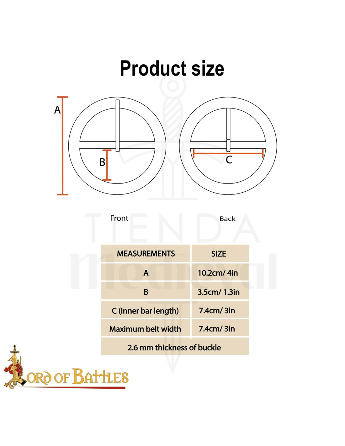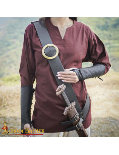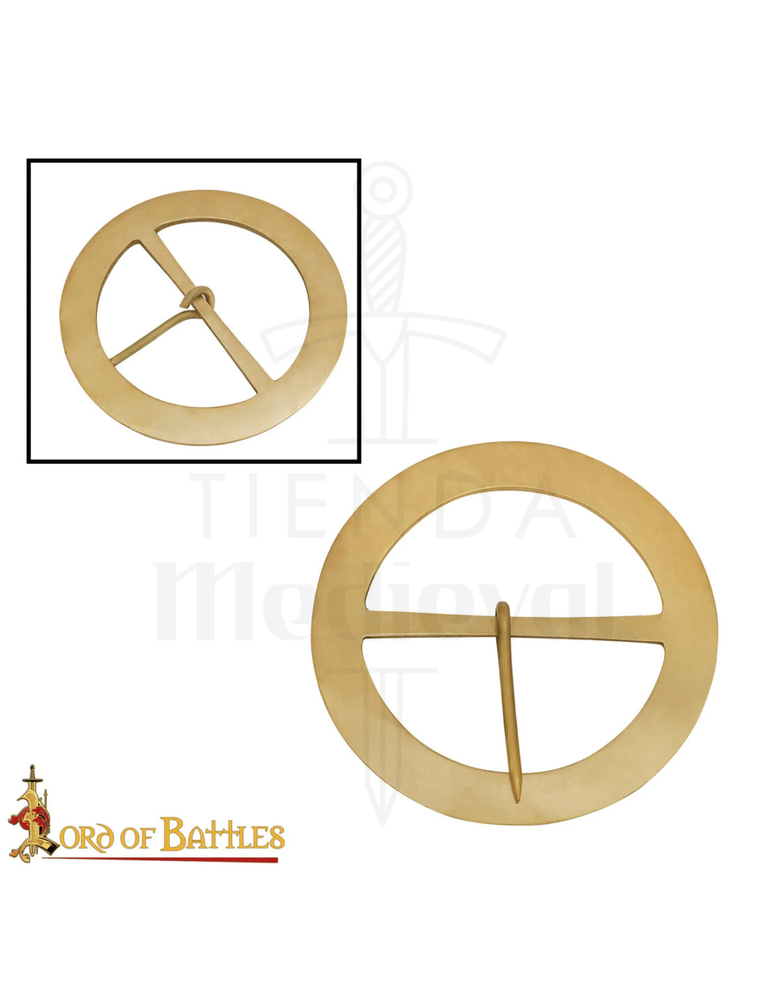 L'immagine del prodotto mostra la fibbia su cuoio scuro e uno sfondo di pelle chiara, uno scenario che suggerisce tradizione e mestiere, e che ti aiuterà a immaginarla integrata in outfit autentici. Se cerchi di acquistare la Fibbia medievale rotonda in ottone (9,5 cm), ecco un'opzione che unisce storia, estetica e praticità in un unico pezzo.