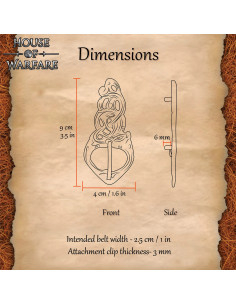 Grazie alla sua costruzione solida, questo pezzo trasmette sicurezza e resistenza, quindi non solo decora, ma resiste al ritmo d'uso in eventi, combattimenti di SCA o giornate di LARP. Il fermaglio centrale è progettato per trattenere saldamente la cinghia, facilitando una regolazione stabile e senza complicazioni, ideale per chi necessita di una chiusura affidabile durante attività intense.