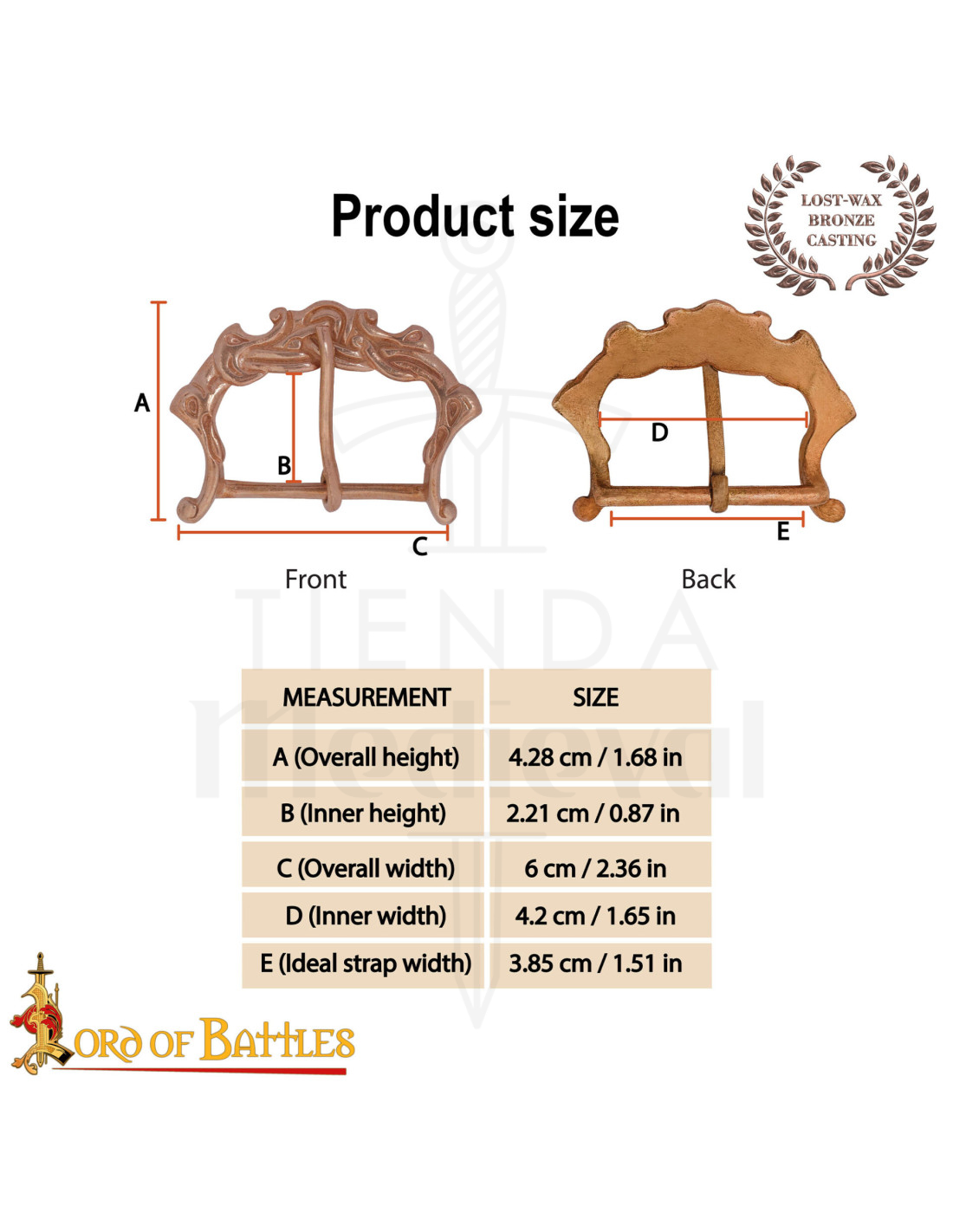 Cosa guadagni con essa? Dettaglio scultoreo che eleva qualsiasi cintura, chiusura affidabile per progetti di pelle, e un aspetto versatile che si adatta bene sia a ricreazioni storiche che a kit LARP o abbigliamento artigianale. Essendo fusa in bronzo tramite il metodo tradizionale, conserva rilievi netti che evidenziano motivi animali e curve, rendendo ogni pezzo in grado di raccontare la propria storia.