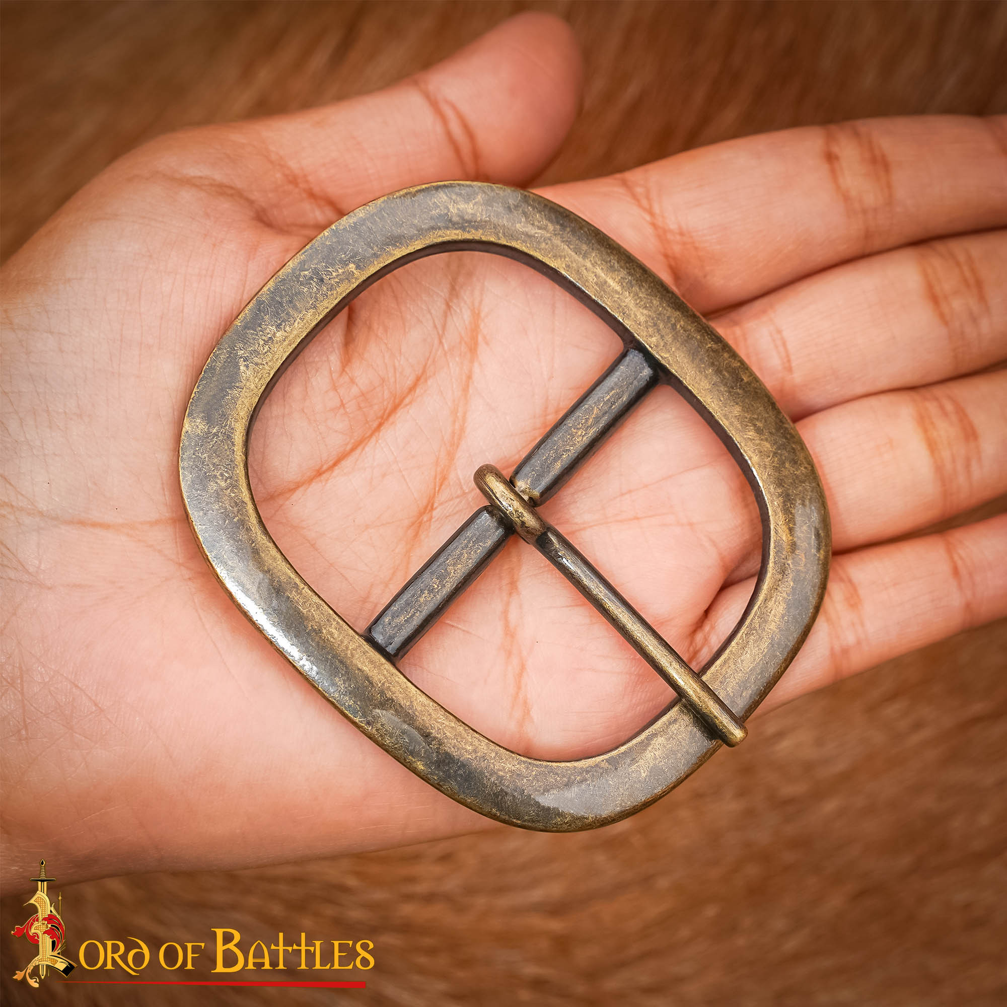 Fibbia in ottone massiccio medievale 2,3 cm per fondine