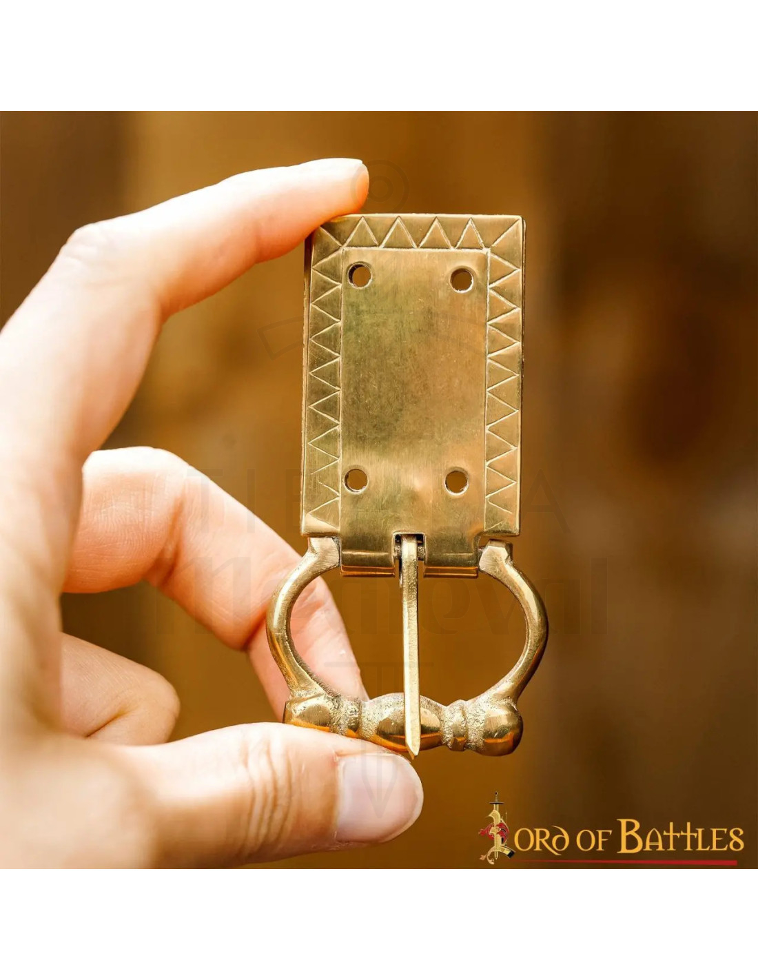 - Ottone massiccio per un'autenticità duratura: Con un design impeccabile, questa fibbia lunga 7,5 cm è realizzata in ottone massiccio puro. Questo materiale non solo contribuisce al suo aspetto medievale opulento, ma garantisce anche la sua durabilità. Preparati a distinguerti e resistere nelle tue avventure LARP e rappresentazioni storiche, ancora e ancora.