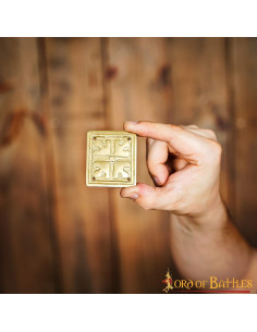 Ogni placca dorata del Set di 3 pezzi decorazione cingulum romano in ottone aggiunge quel tocco di autenticità che distingue i reenactori e i collezionisti, grazie a un rilievo floreale e una croce centrale finita con volute, con un cerchio elevato nel cuore del design. La finitura lucida e le cornici in rilievo offrono una brillantezza controllata sull'outfit, esaltando texture e ombre affinché i motivi siano apprezzabili anche da lontano.