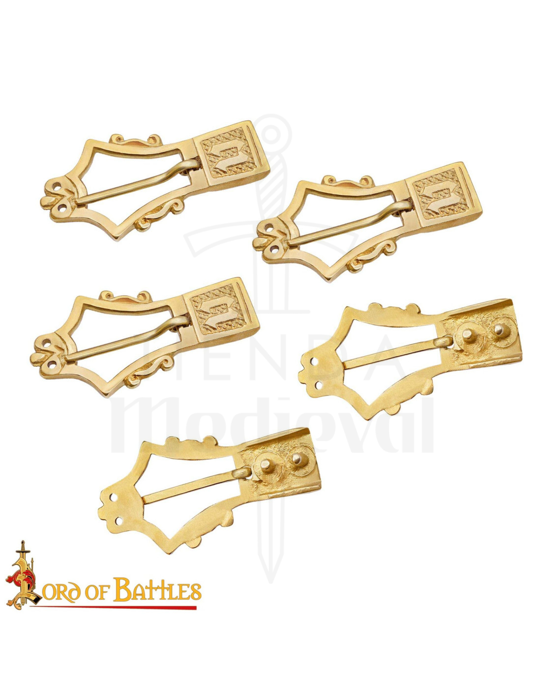 Set di 5 fibbie in ottone a forma di lira in autentico stile medievale combina estetica storica, praticità e versatilità, offrendo la finitura perfetta per un abbigliamento con presenza e personalità.