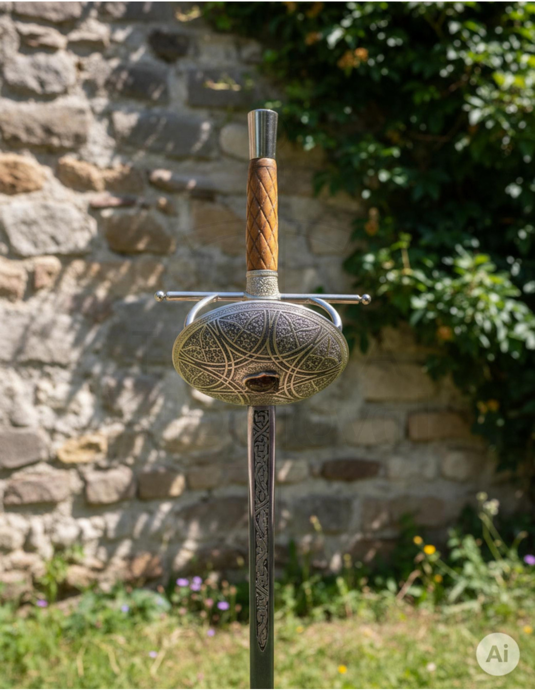 Scopri il fioretto spagnolo dorato, un autentico gioiello della spada! Realizzato a Toledo, in Spagna, dal maestro spadaio José Luis Rubio, questo fioretto è il complemento perfetto per collezionisti o dilettanti. Il suo manico in legno gli conferisce un tocco di eleganza e distinzione, mentre la sua lama in acciaio inossidabile ne garantisce durata e...