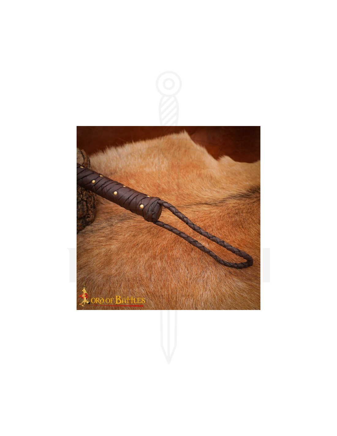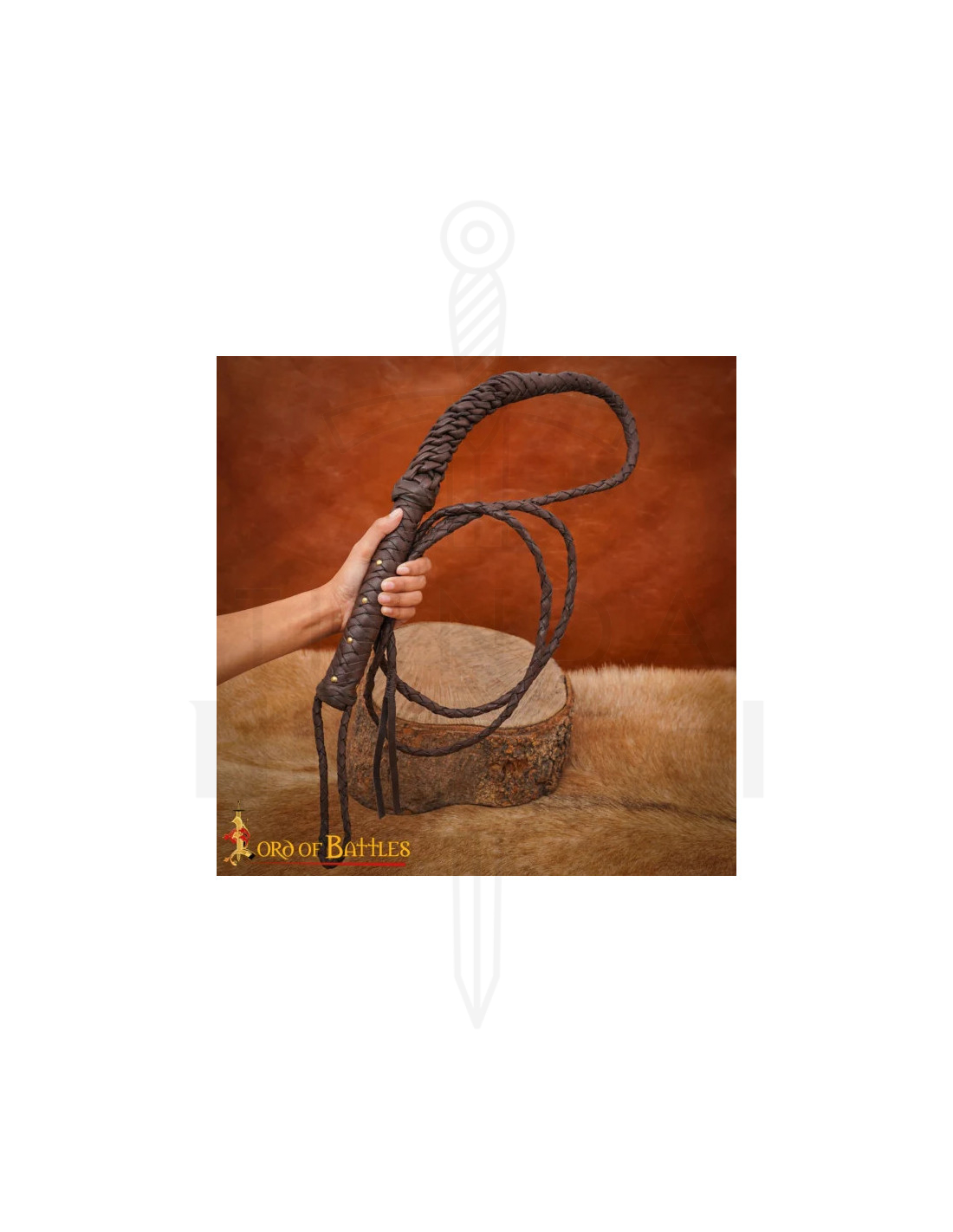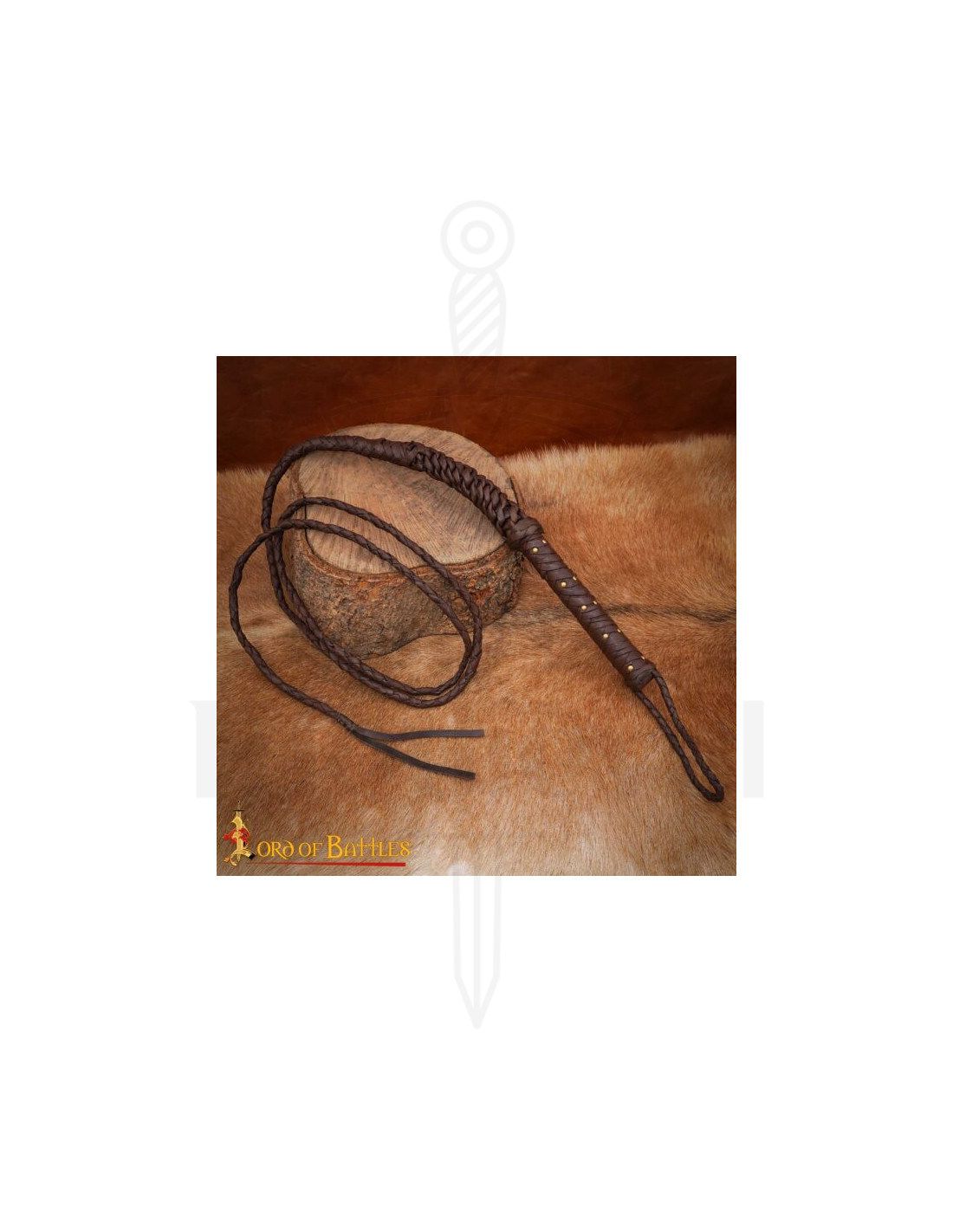 Se cerchi di acquistare la Frusta medievale rustica in pelle marrone intrecciata, ecco un pezzo unico che unisce tradizione, estetica e funzionalità per completare qualsiasi allestimento storico o di fantasia.