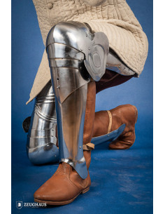- Realizzato in acciaio di spessore 1,2 mm , ogni pezzo è unico grazie ai metodi artigianali utilizzati. Questa armatura garantisce una protezione affidabile e duratura per le tue gambe sul campo di battaglia.