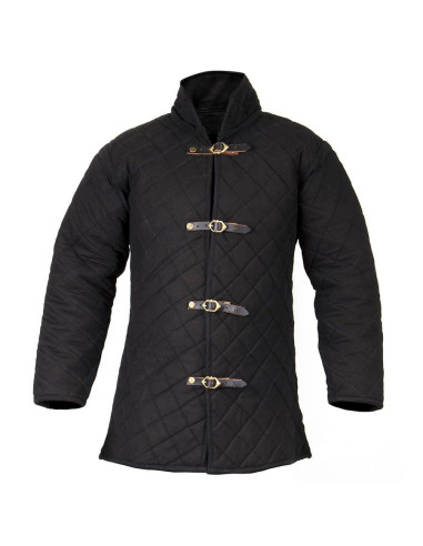 Eleva la tua presenza medievale con il gambeson modello Leopold in un impressionante colore nero! Più che un indumento, è la chiave per la perfetta combinazione di stile, protezione e mobilità sul campo di battaglia. Scopri perché il modello Leopold è una scelta magistrale: