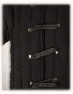 - Chiusura solida con cinque cinturini e fibbie a forma di rotolo: il gambeson si chiude con cinque cinturini e fibbie a forma di rotolo sul davanti. Questo sistema di chiusura non solo garantisce una vestibilità sicura, ma aggiunge anche un tocco autentico al design, evidenziando il tuo impegno per l'autenticità medievale.