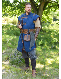 Gambeson medievale blu-marrone finito usurato modello Vari