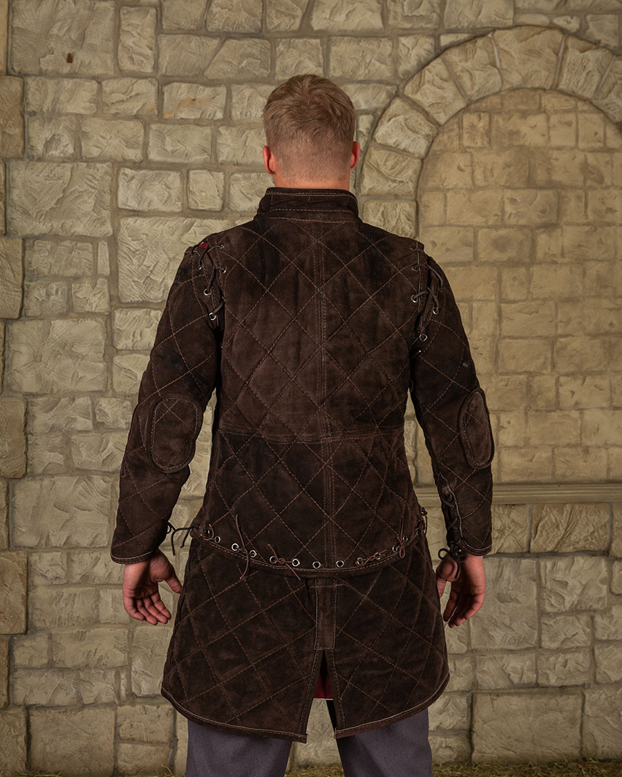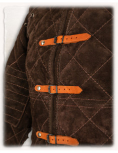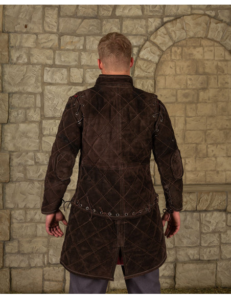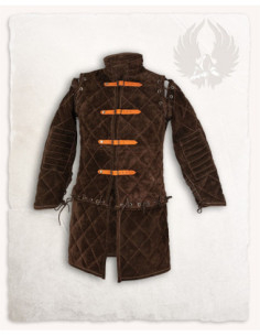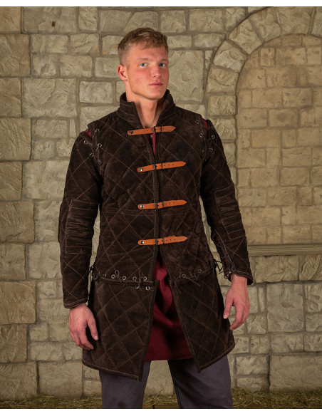 Gambeson da guerriero medievale senza maniche, colore marrone