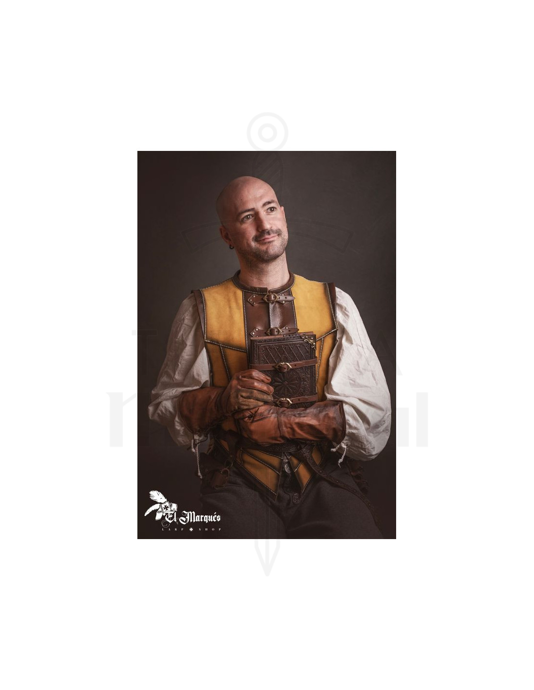 La Cotta medievale corta da uomo, camoscio giallo, offre quella miscela perfetta tra eleganza e prestazioni, grazie al camoscio di qualità che conferisce una texture calda e resistente, mentre i rinforzi sul colletto, le maniche, il fondo e parte della parte anteriore aggiungono protezione dove è più necessario. Il risultato è un capo che resiste all'azione e mantiene una silhouette snella per tutta la giornata, ideale per giornate di combattimento, passeggiate sceniche o banchetti con stile.