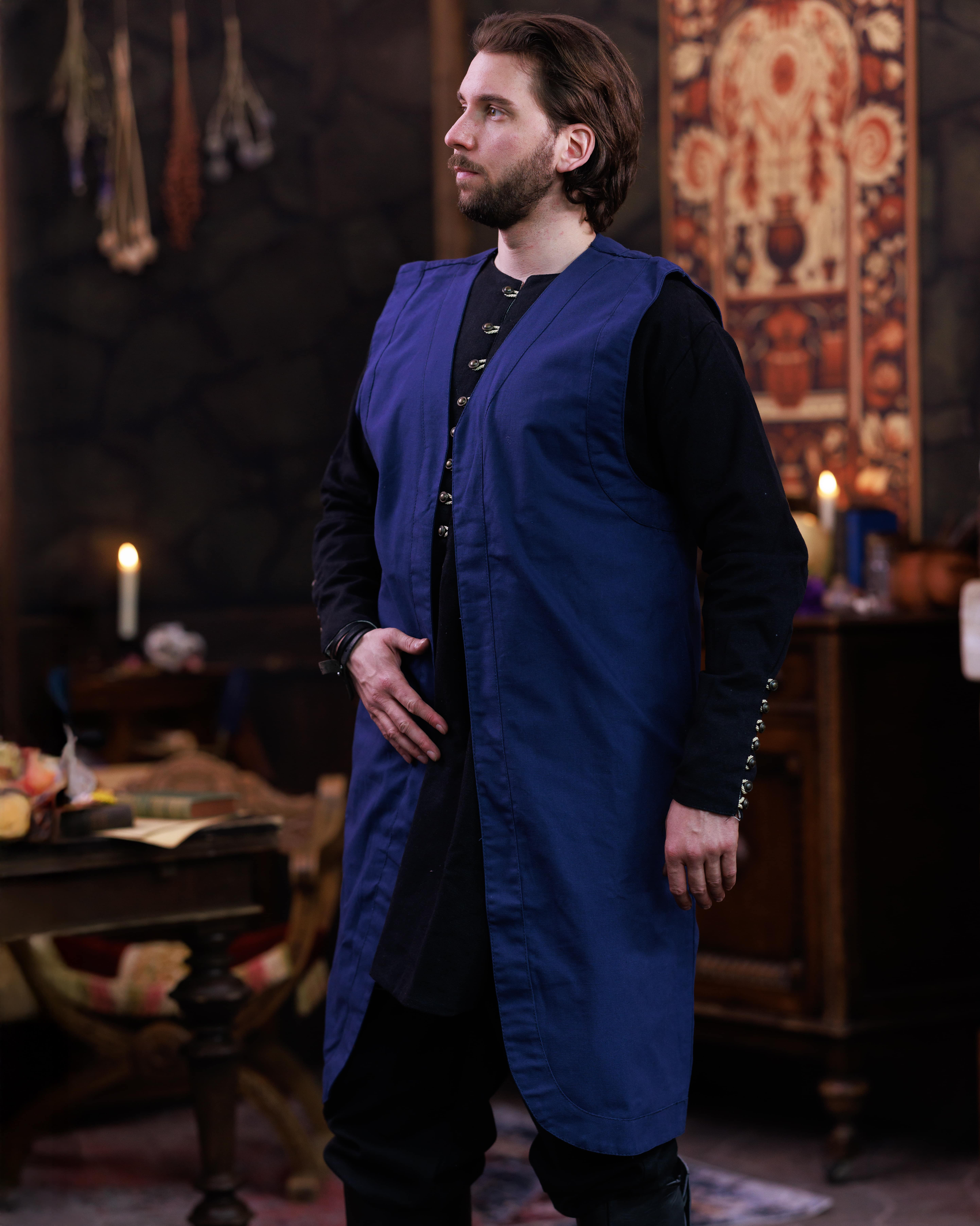 Gilet medievale lungo modello Oberon, colore blu