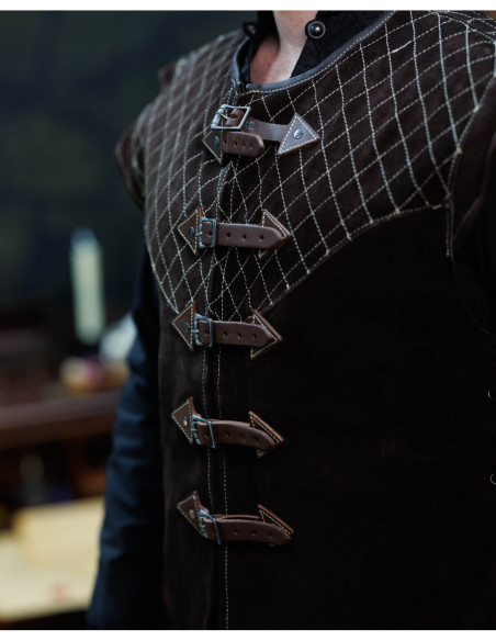 Gilet medievale lungo in scamosciato modello Garen, colore marrone