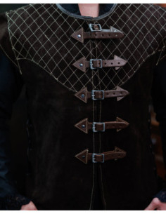 Gilet medieval in pelle scamosciata modello Arthur, colore marrone chiaro