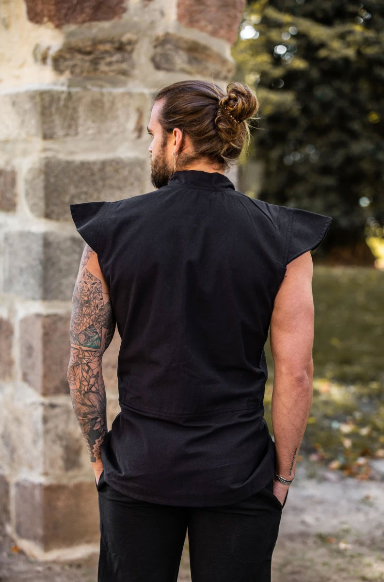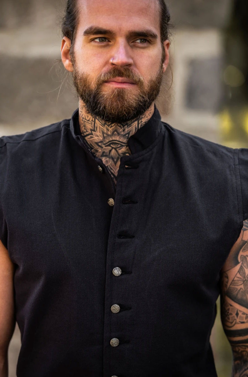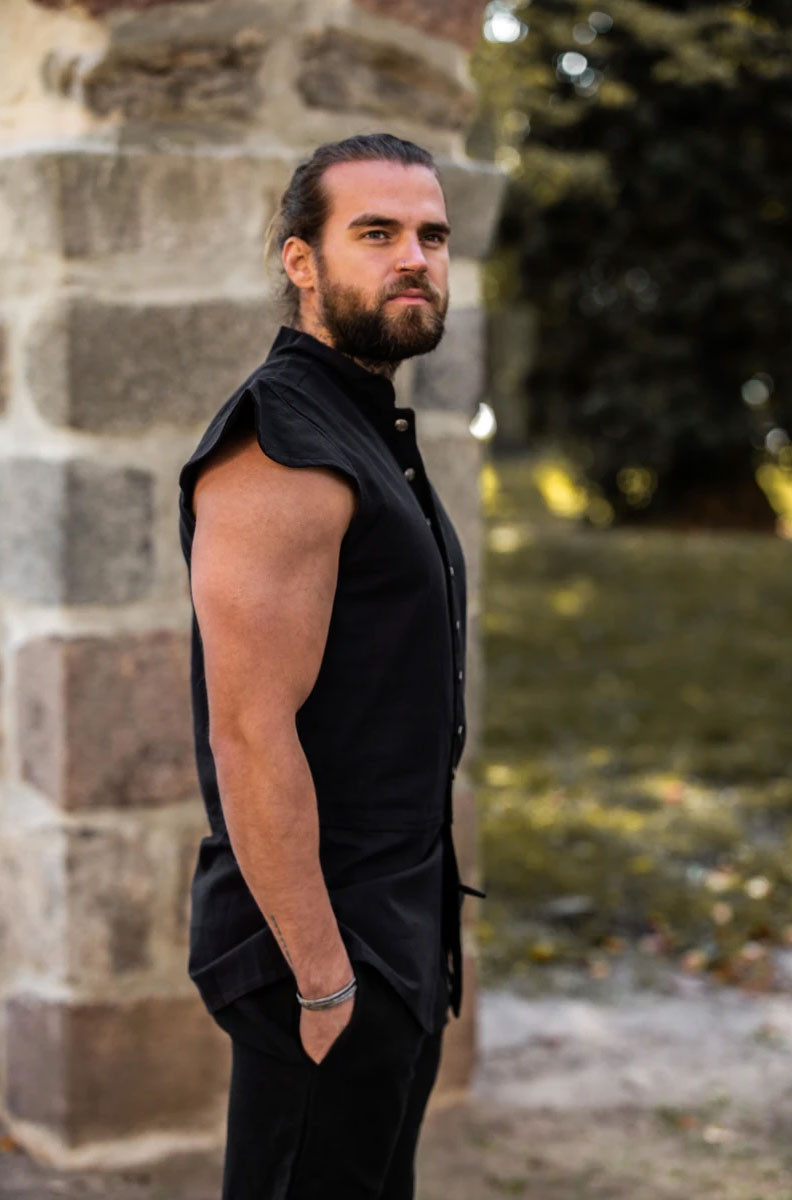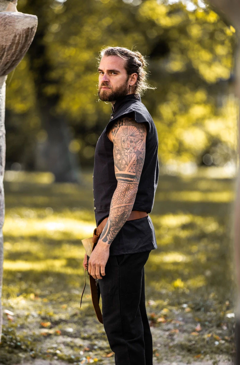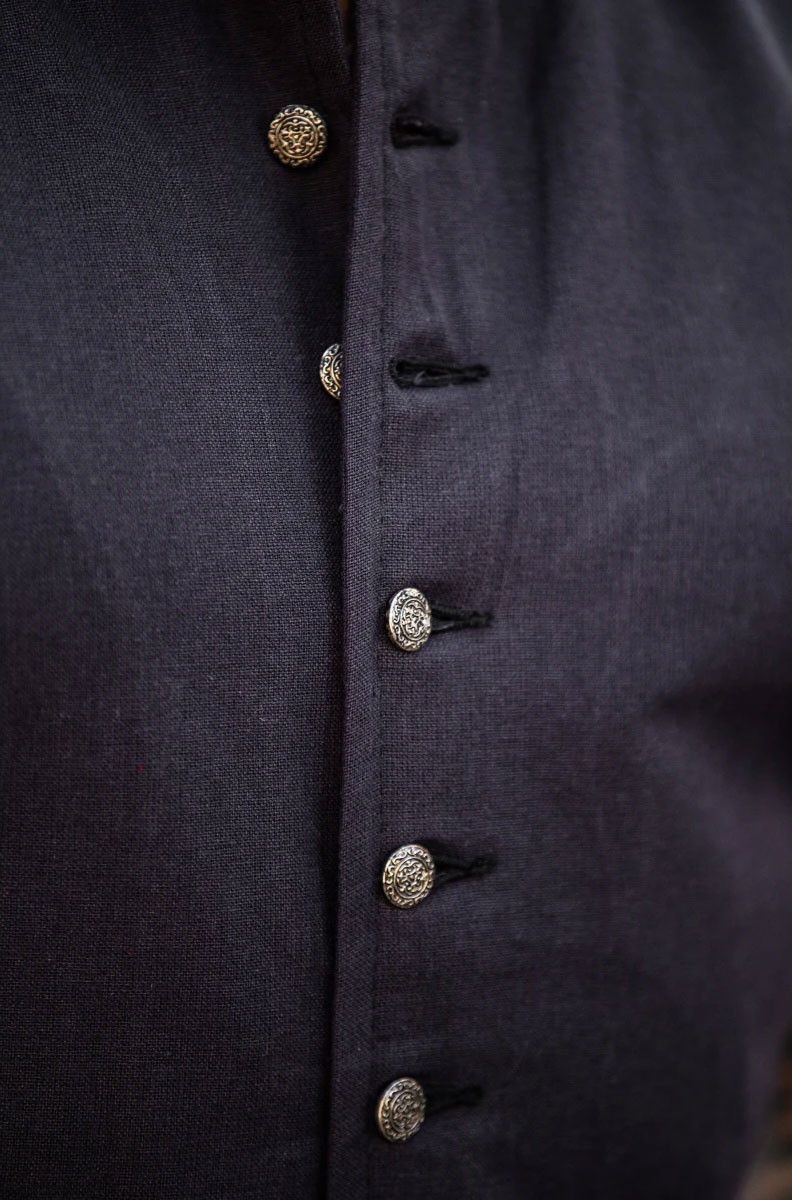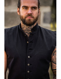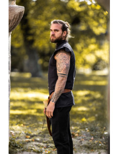 Gilet medievale chiuso in pelle scamosciata, modello Penda, nero.