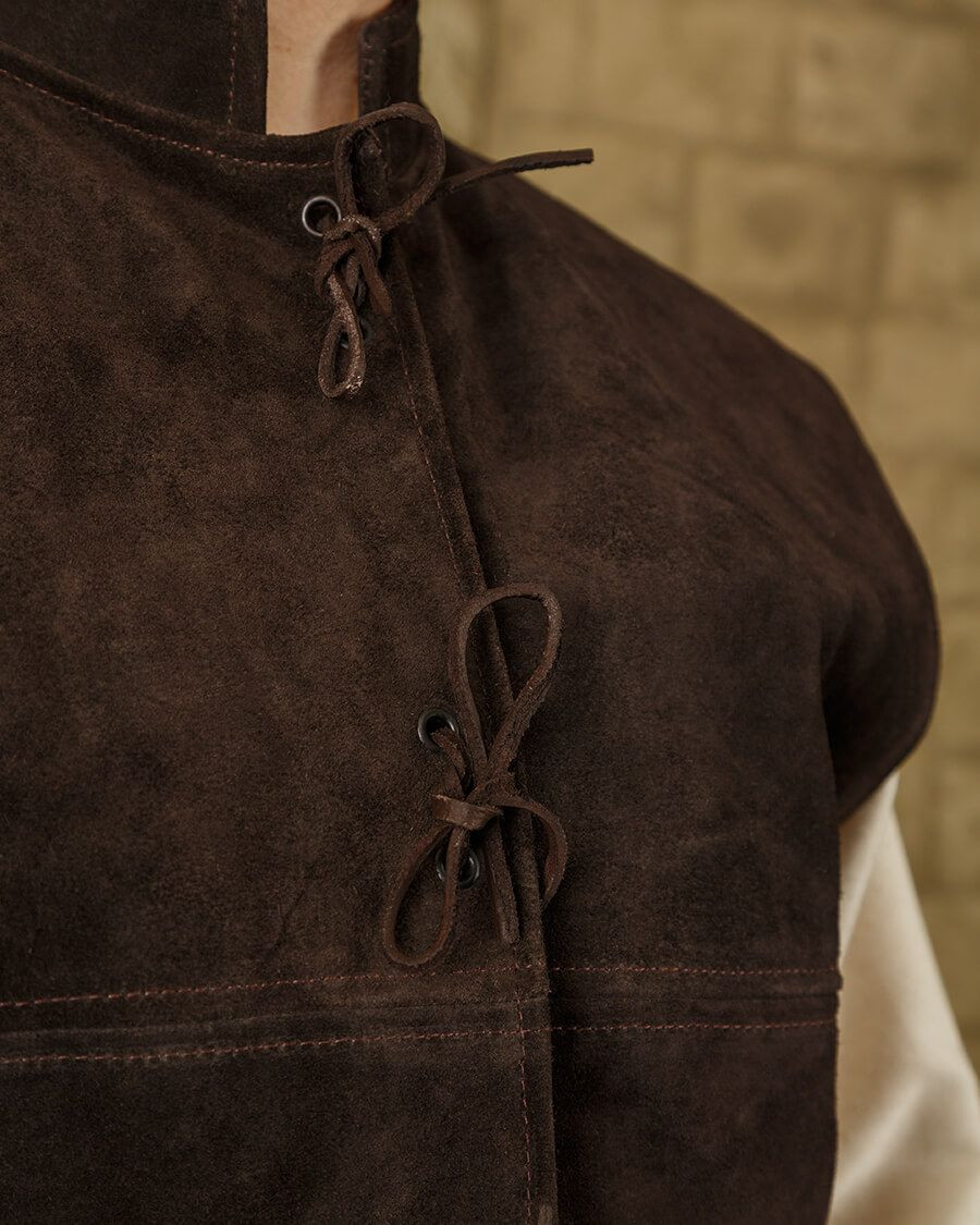 Scopri il Gilet Rinascimentale 'Laertes' in camoscio marrone e lasciati conquistare dalla sua eleganza e versatilità!