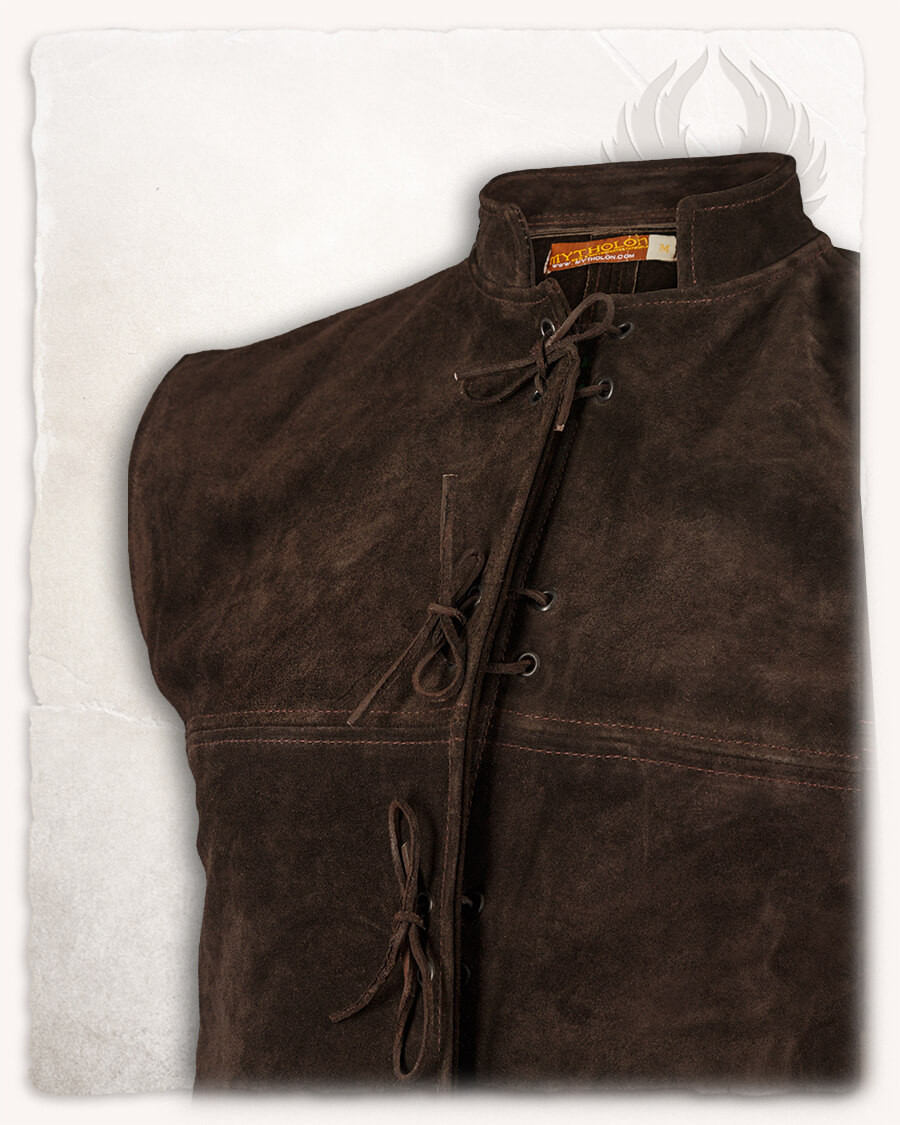 Il gilet rinascimentale 'Laertes' in pelle scamosciata marrone è la scelta ideale per chi cerca un tocco autentico nel proprio guardaroba rinascimentale. Non perdere l'opportunità di aggiungere questo incredibile gilet alla tua collezione e distinguerti in ogni occasione speciale!