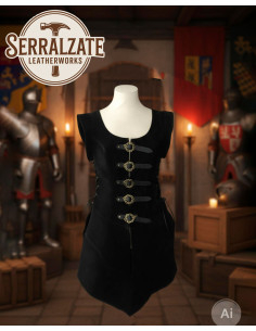 Gilet medievale regolabile in pelle nera, modello Tenebra