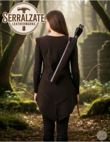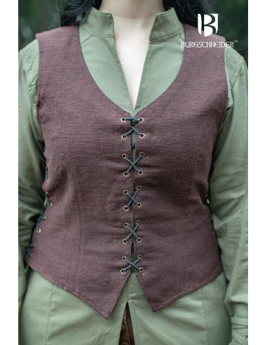 Corta giacca medievale marrone in pelle scamosciata, donna