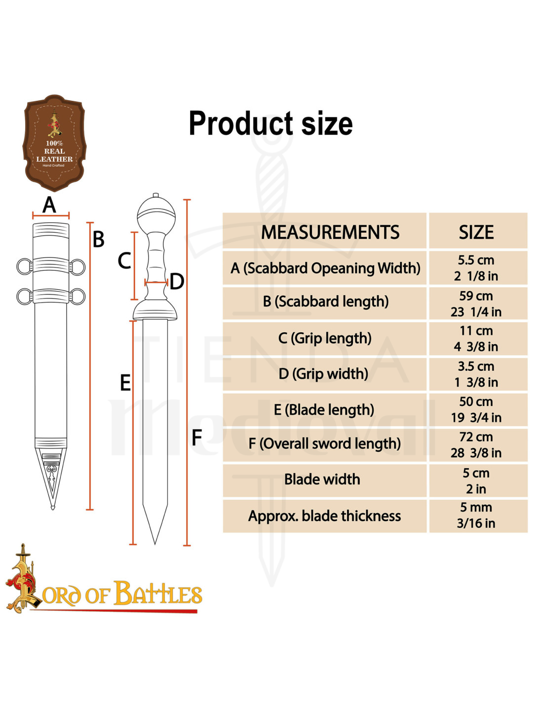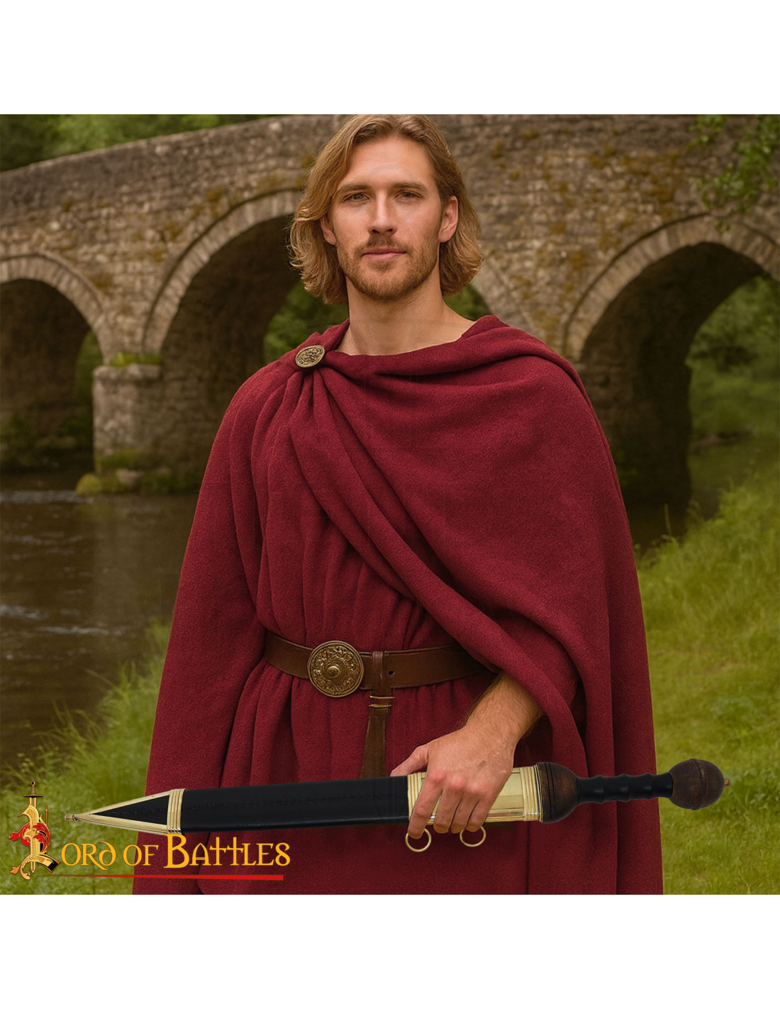 Questa replica connette direttamente con la tradizione romana, la stessa che ha modellato termini come gladiatore, ed evoca l'efficacia delle legioni nel combattimento corpo a corpo, fornendo un contesto storico alla tua collezione, costume o allestimento museale.