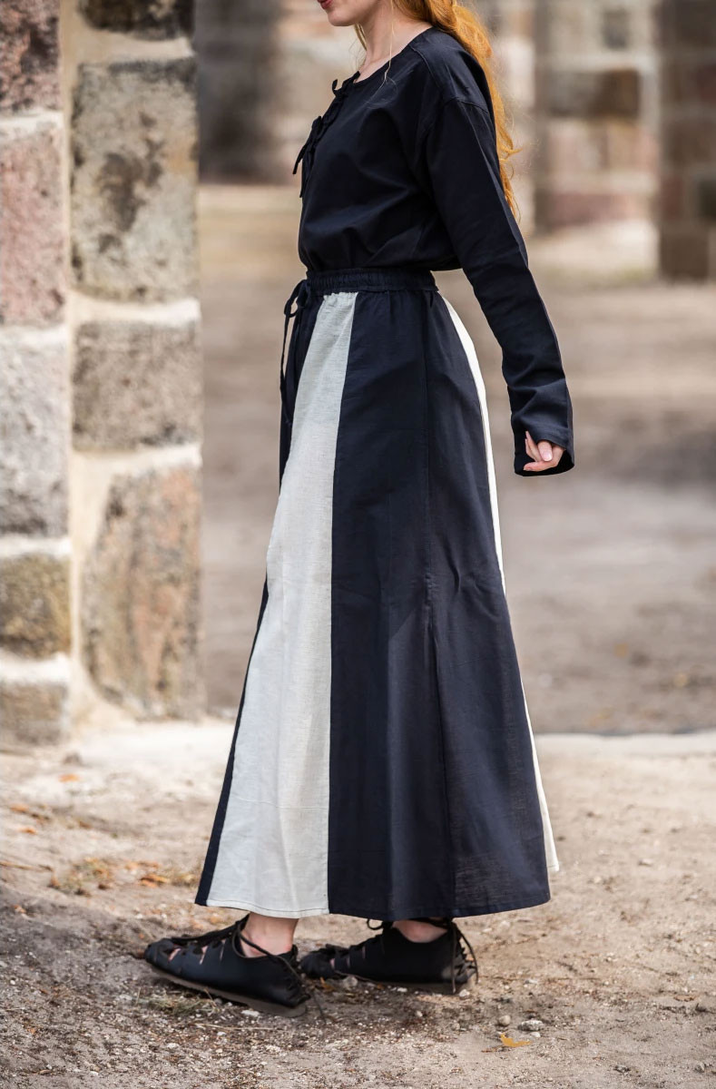 Innamorati del fascino medievale con la nostra gonna da donna modello Diana in nero-bianco. Progettata per riportarti indietro nel tempo, questa gonna dal taglio semplice è un must in qualsiasi collezione di moda medievale.