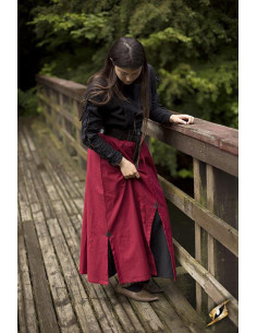 Scopri la gonna medievale di Battle in rosso! Questo indumento ampio, sia per uomo che per donna, è perfetto per aggiungere un tocco autentico al tuo abbigliamento medievale. Progettata per essere indossata sui fianchi, questa gonna in cotone spesso ti offrirà comfort e stile ad ogni passo.
