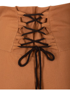 La gonna medievale modello 'Hannah' in colore sabbia è un capo che combina eleganza e funzionalità, perfetta per diverse tematiche di personaggi femminili. Progettata in stile gonna con corpetto, presenta una sezione aderente nella parte superiore che si chiude sul davanti con bottoni decorativi in cocco. Inoltre, il suo sistema di lacci nella parte posteriore consente una regolazione personalizzata, assicurando comfort e una vestibilità perfetta.
