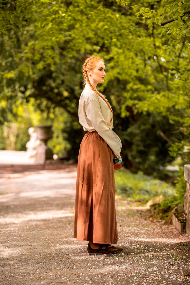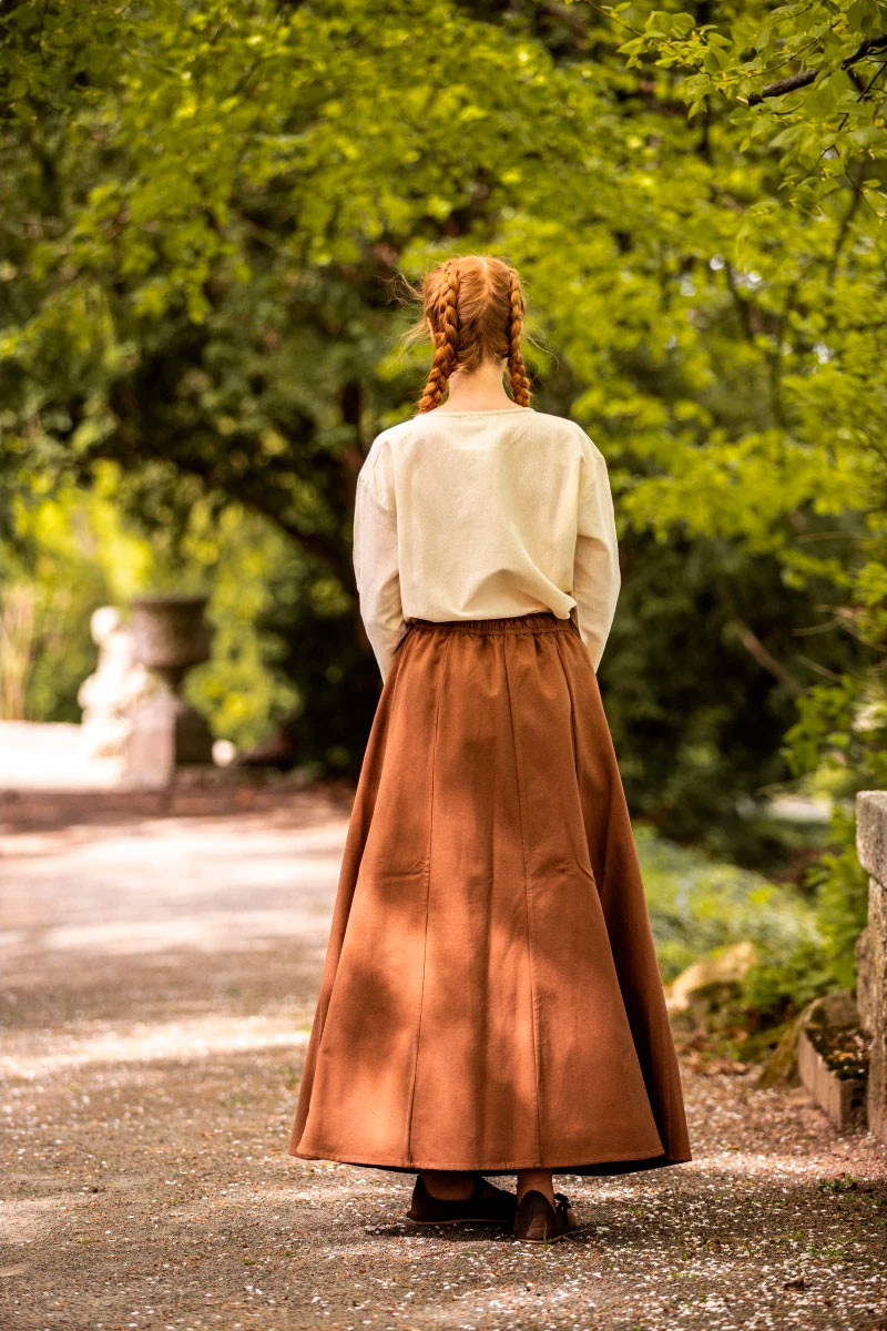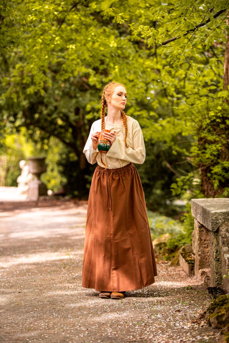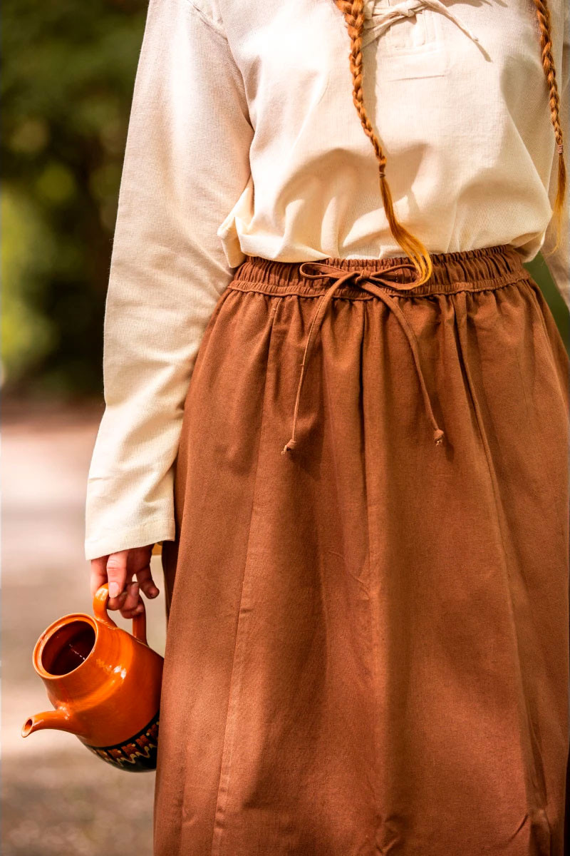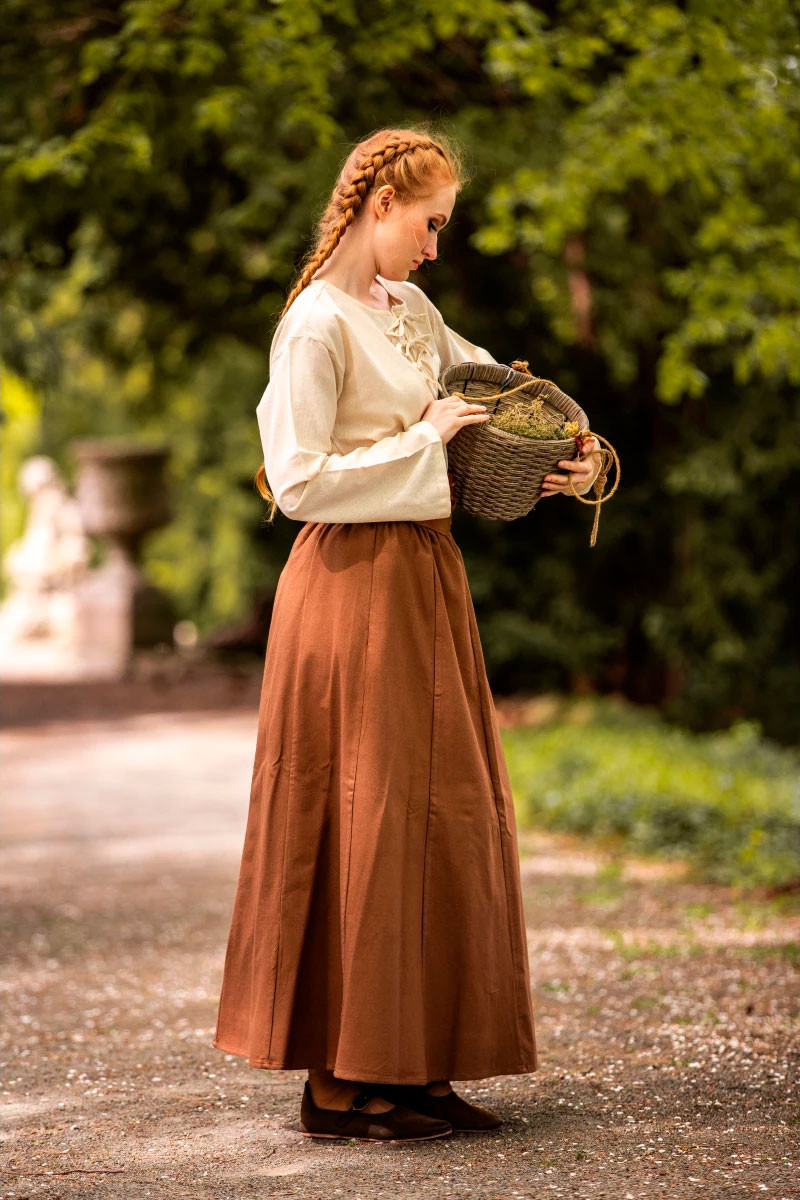 Ti affascina l'idea di sentirti potente e sicura, come se avessi conquistato il tuo regno? La gonna medievale donna in colore Tabacco è molto più di un semplice capo. È il tuo passaporto per una storia in cui tu hai il controllo, in cui ogni passo conferma la tua autorità e il tuo stile. Progettata con precisione in Germania dalla rinomata marca Leonardo Carbone, questa peça combina un'estetica autentica con la resistenza del miglior cotone spesso, pronto a accompagnarti in ogni avventura o evento speciale.