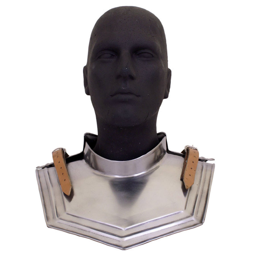 La gorgiera è realizzata in acciaio di alta qualità, con uno spessore di 1,6 mm, che ne garantisce resistenza e durata. La sua finitura naturale gli conferisce un aspetto autentico e si adatta perfettamente a qualsiasi stile di armatura.