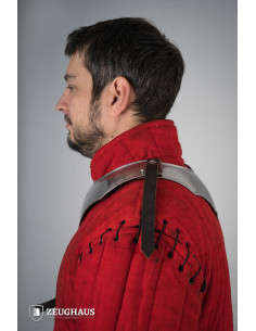 Ogni bordo è rivettato ed ha uno spessore di circa 4 mm, garantendo una sicurezza eccezionale anche nelle situazioni più critiche. La gorgiera non solo svolge la sua funzione protettiva sostenendo le protezioni per le spalle, ma è anche un vero e proprio pezzo decorativo.