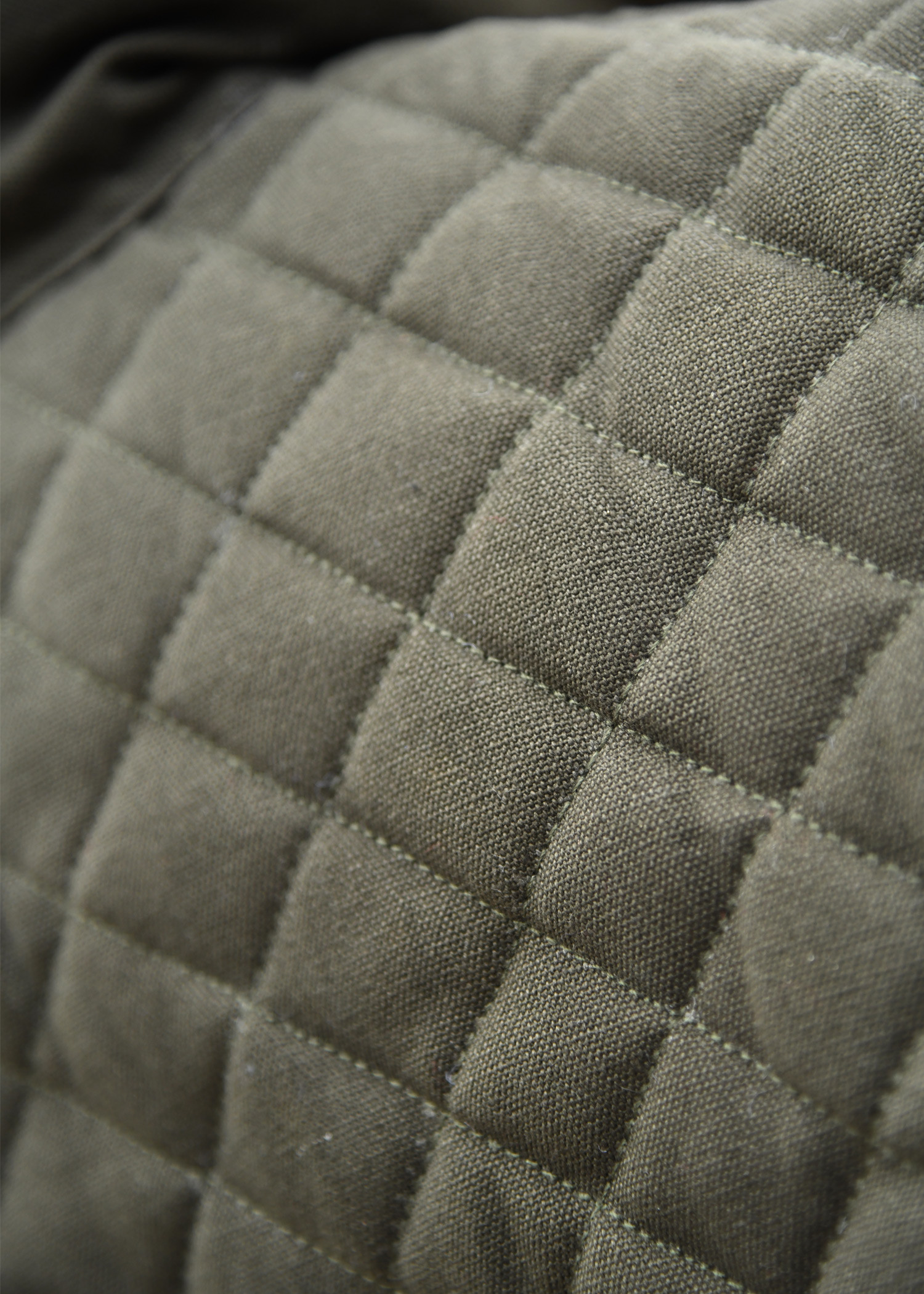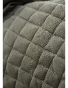 Realizzato da Ulfberth, combina tre strati di alta qualità: un esterno resistente in tela di cotone, imbottitura interna in poliestere per assorbire gli urti e un rivestimento in cotone che garantisce morbidezza e comfort. Il suo design con cuciture a rombi non solo offre flessibilità, ma garantisce anche una vestibilità ergonomica ideale per lunghe giornate.