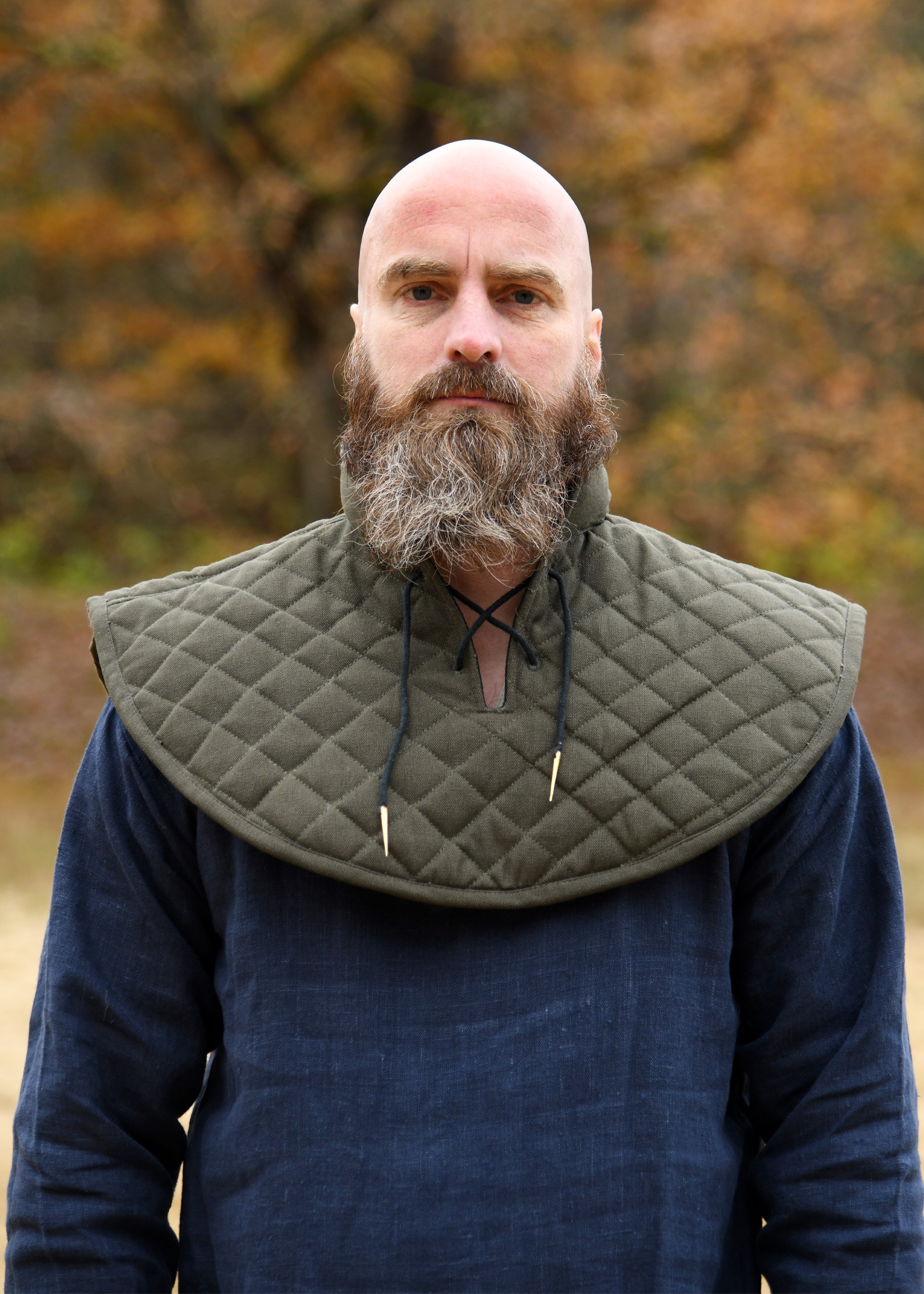 Gorjal medieval imbottito in cotone, colore verde oliva