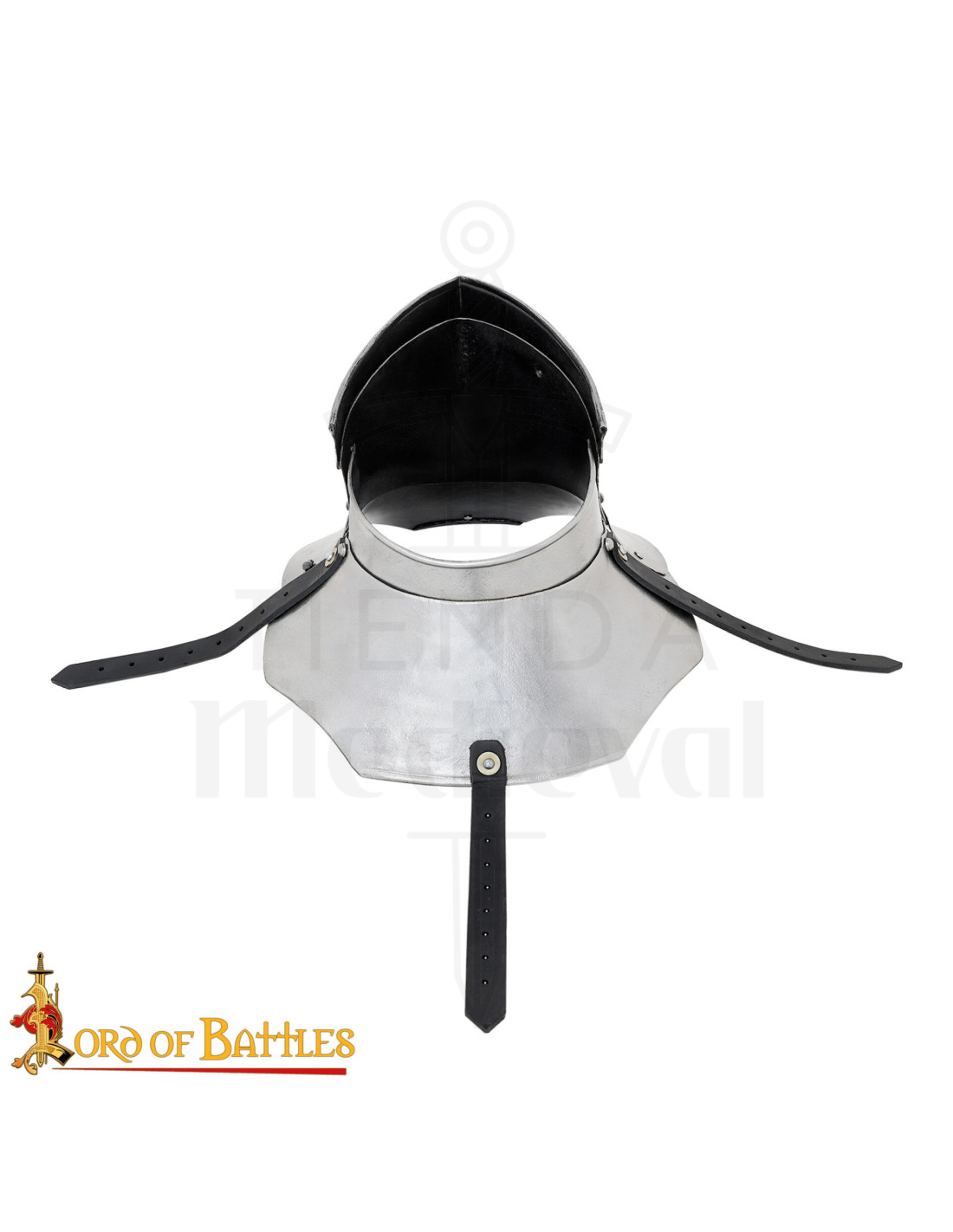 Nel contesto storico, il gorjal si evolse nei secoli XIV e XV per proteggere la gola e il petto, e il bevor mobile divenne sinonimo di versatilità in combattimento e sfilata. Qui trovi quella tradizione reinterpretata per il praticante moderno, pronta per essere indossata, recitata o mostrata con carattere.
