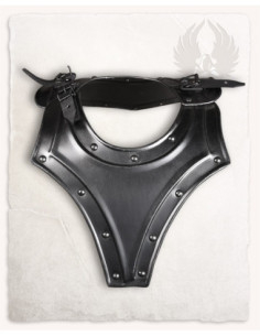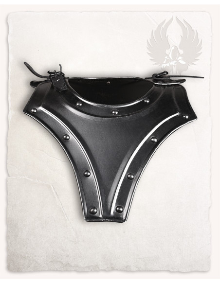 L'ornamentazione con bordi e rivetti, presente in tutta la serie Georg, porta a un finitura curata che onora lo stile storico, mentre rinforza le unioni critiche del pezzo. Se siete interessati a comprare il Gorget medievale modello Georg, finitura annerita:, troverete un pezzo che combina assemblaggio pratico, presenza visiva e compatibilità con insiemi completi della stessa famiglia.