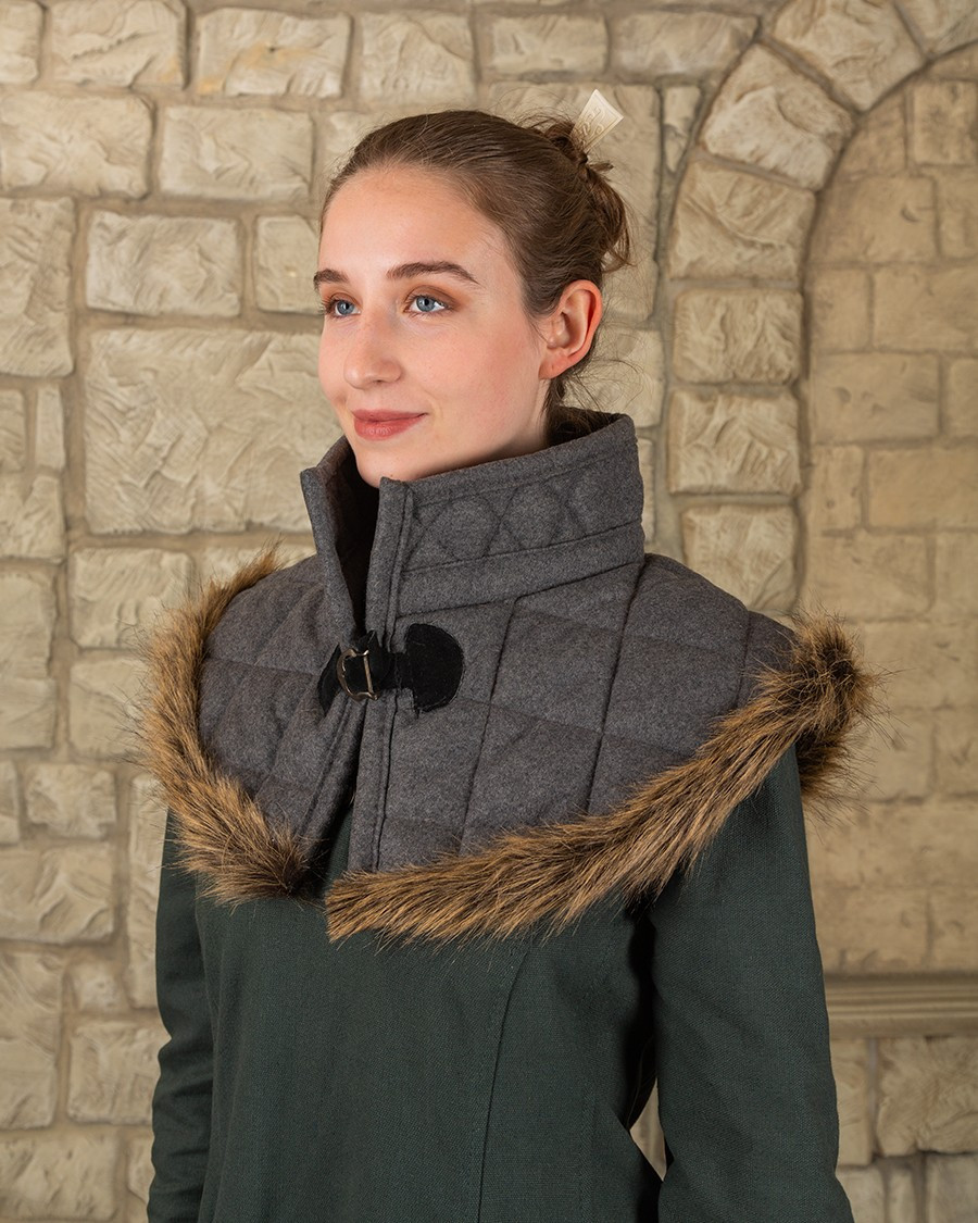Se desideri acquistare il Collare medievale in lana e pelle modello Nimue, colore grigio, troverai in questo capo una soluzione pratica e stilosa per giornate all'aperto, rievocazioni storiche o per chi cerca un dettaglio autentico nel suo guardaroba quotidiano.