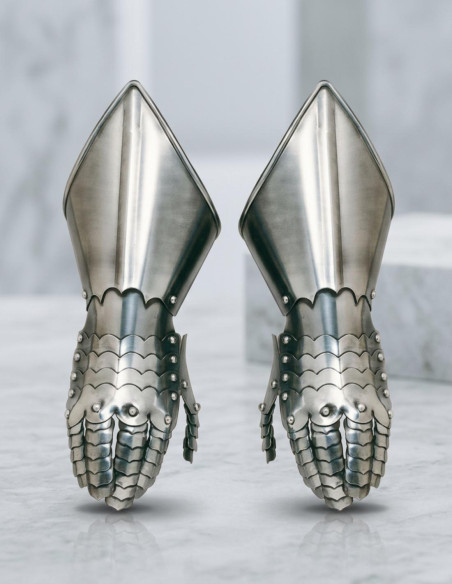 Ti piacerebbe che la tua collezione di oggetti storici avesse un tocco di distinzione e bellezza che lasci tutti senza parole? Questi guanti lisci, che riproducono l'armatura del XVI secolo, ti permettono di possedere un pezzo che parla da solo. Non sono per combattere, ma per mostrare e ammirare. Con la loro finitura impeccabile e il design semplice, elevano qualsiasi spazio e riflettono l'amore per la storia e l'artigianato.