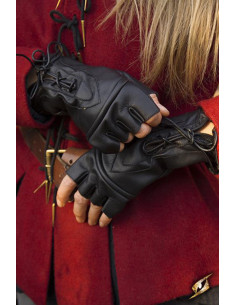 Guanti medievali senza dita in pelle modello Gillian, colore bordeaux