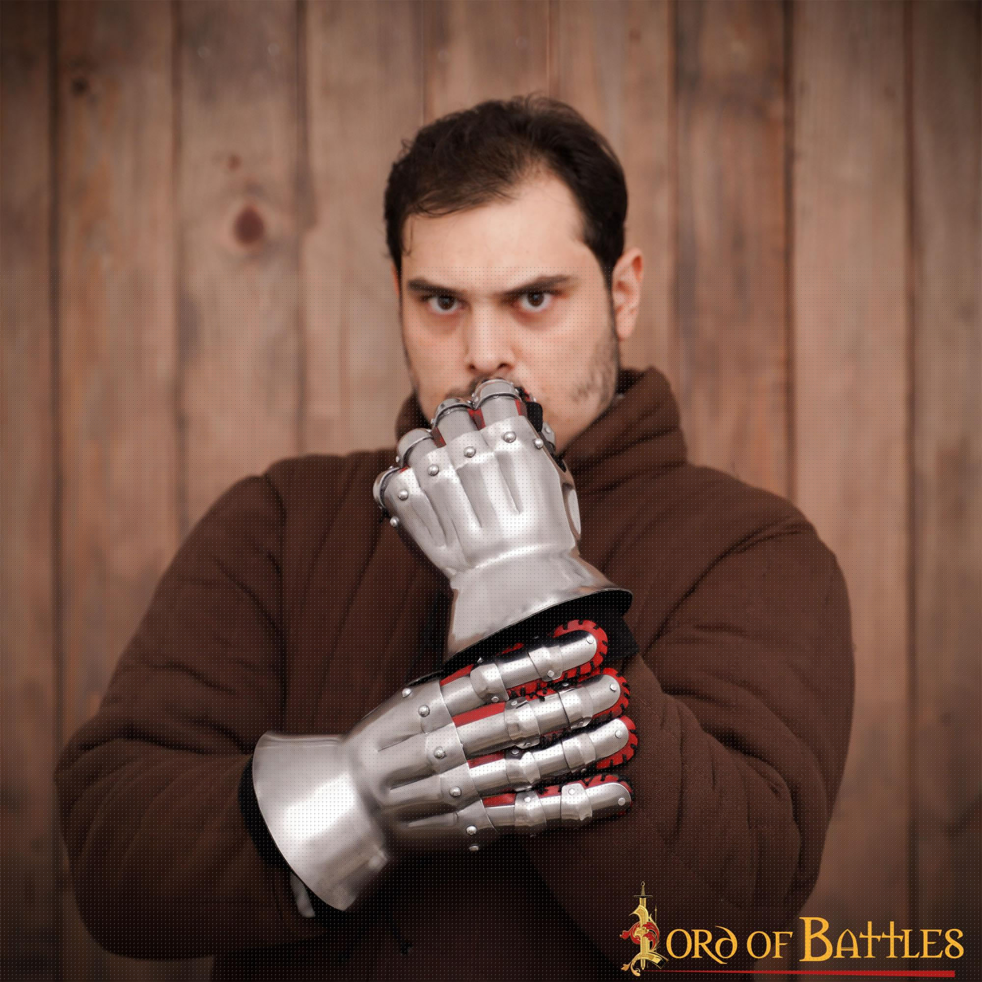 L'uso di acciaio dolce calibro 16 ne garantisce la durata e la resistenza in tutte le battaglie e gli scontri. Non dovrai preoccuparti di danni o usura prematura, poiché questi guanti sono costruiti per resistere anche alle condizioni più difficili.